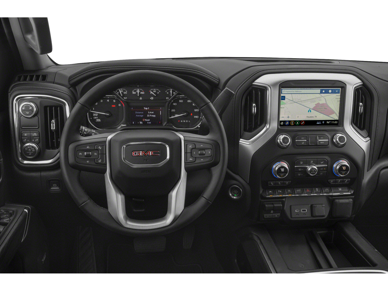 12-Volt Rear Auxiliary Power Outlet, 120-Volt Bed Mounted Power Outlet, 120-Volt Instrument Panel Power Outlet, 170 Amp Alternator, 2 USB Ports, 2 USB Ports (1st Row), 20 x 9 Polished Aluminum Wheels, Air Conditioning, Apple CarPlay/Android Auto, Automatic temperature control, Auxiliary External Transmission Oil Cooler, Chrome Assist Steps, Chrome Grille, Color-Keyed Carpeting Floor Covering, Compass, Deep-Tinted Glass, Delay-off headlights, Driver Alert Package I, Driver Alert Package II, Electric Rear-Window Defogger, Electrical Lock Control Steering Column, Floor Mounted Console, Following Distance Indicator, Forward Collision Alert, Front Bucket Seats, Front dual zone A/C, Front fog lights, Front Frame-Mounted Black Recovery Hooks, Front Pedestrian Braking, Fully automatic headlights, GMC 4G LTE, GMC Connected Access, HD Radio, Heated 2nd Row Outboard Seats, Heated Driver & Front Passenger Seating, Heated front seats, Heated steering wheel, Heavy-Duty Rear Locking Differential, Hitch Guidance, Hitch Guidance w/Hitch View, In-Vehicle Trailering App, Integrated Trailer Brake Controller, IntelliBeam Automatic High Beam On/Off, Keyless Open & Start, Lane Change Alert w/Side Blind Zone Alert, Lane Keep Assist w/Lane Departure Warning, LED Cargo Area Lighting, Low Speed Forward Automatic Braking, Manual Tilt-Wheel & Telescoping Steering Column, OnStar & GMC Connected Services Capable, Perimeter Lighting, Power Door Locks, Power Front Passenger Windows w/Express Up/Down, Power Front Windows w/Driver Express Up/Down, Power Rear Windows w/Express Down, Power Sliding Rear Window w/Rear Defogger, Power Sunroof, Preferred Equipment Group 4SA, Premium Bose 7-Speaker Sound System, Radio: Premium GMC Infotainment Sys w/Navigation, Rear Cross Traffic Alert, Rear Dual USB Charging-Only Ports, Rear Wheelhouse Liners, Remote Vehicle Starter System, Safety Alert Seat, SiriusXM Radio, SLT Convenience Package, SLT Preferred Package, Spray-On Pickup Bed Liner w/GMC Logo, Steering Wheel Audio Controls, Texas Edition Badging, Texas Edition SLT Premium Plus Package, Theft Deterrent System (Unauthorized Entry), Trailer Tire Pressure Monitor System, Trailering Package, Ultrasonic Front & Rear Park Assist, Universal Home Remote, Ventilated Driver & Front Passenger Seats, Wireless Charging.CARFAX One-Owner.GLENN POLK AUTO GROUP HAS BEEN FAMILY OWNED AND OPERATED SINCE 1995, AND WE WILL DO WHATEVER IT TAKES TO EARN YOUR BUSINESS!! 2019 GMC Sierra 1500 SLT Dark Sky Metallic EcoTec3 5.3L V8